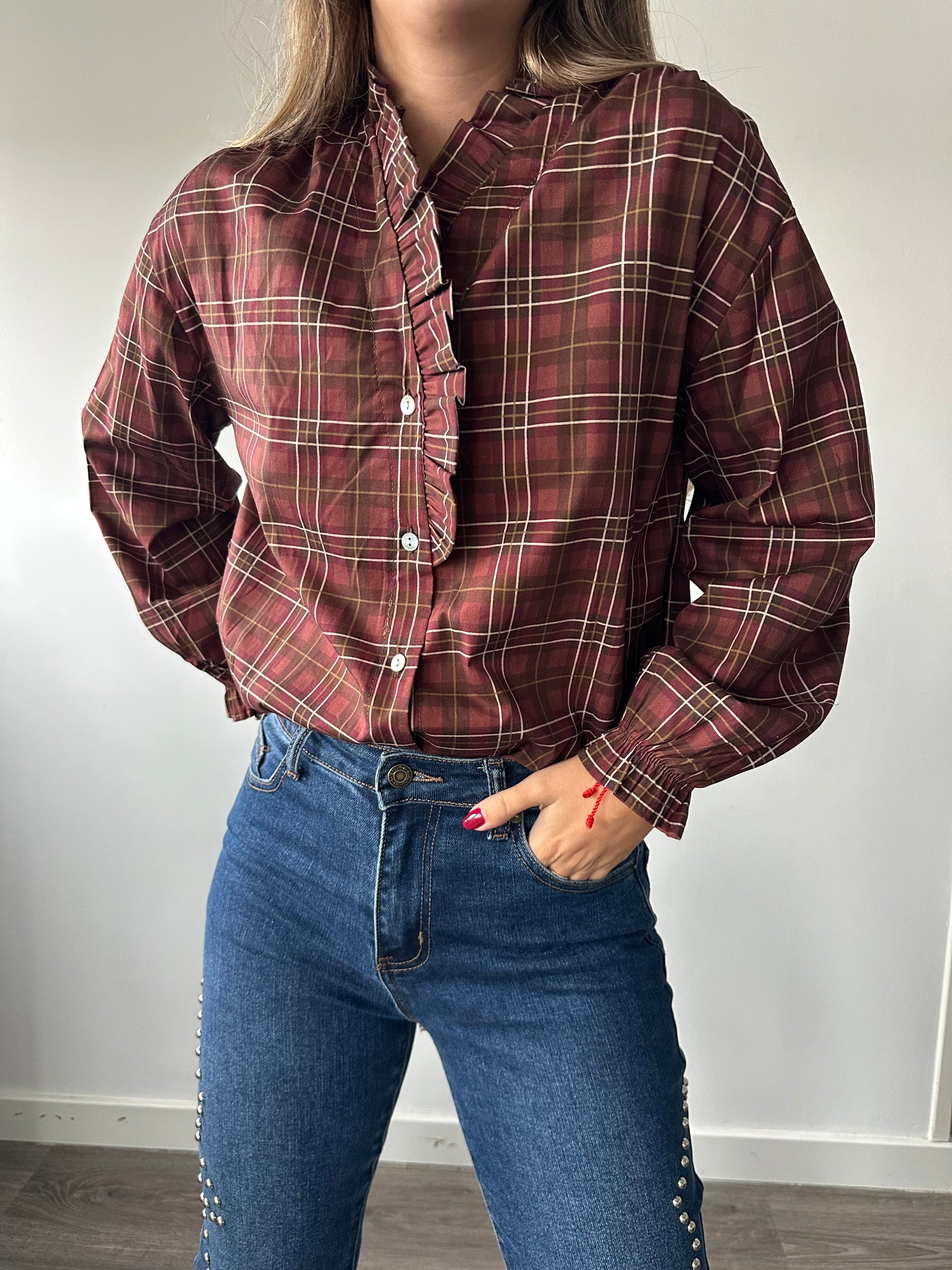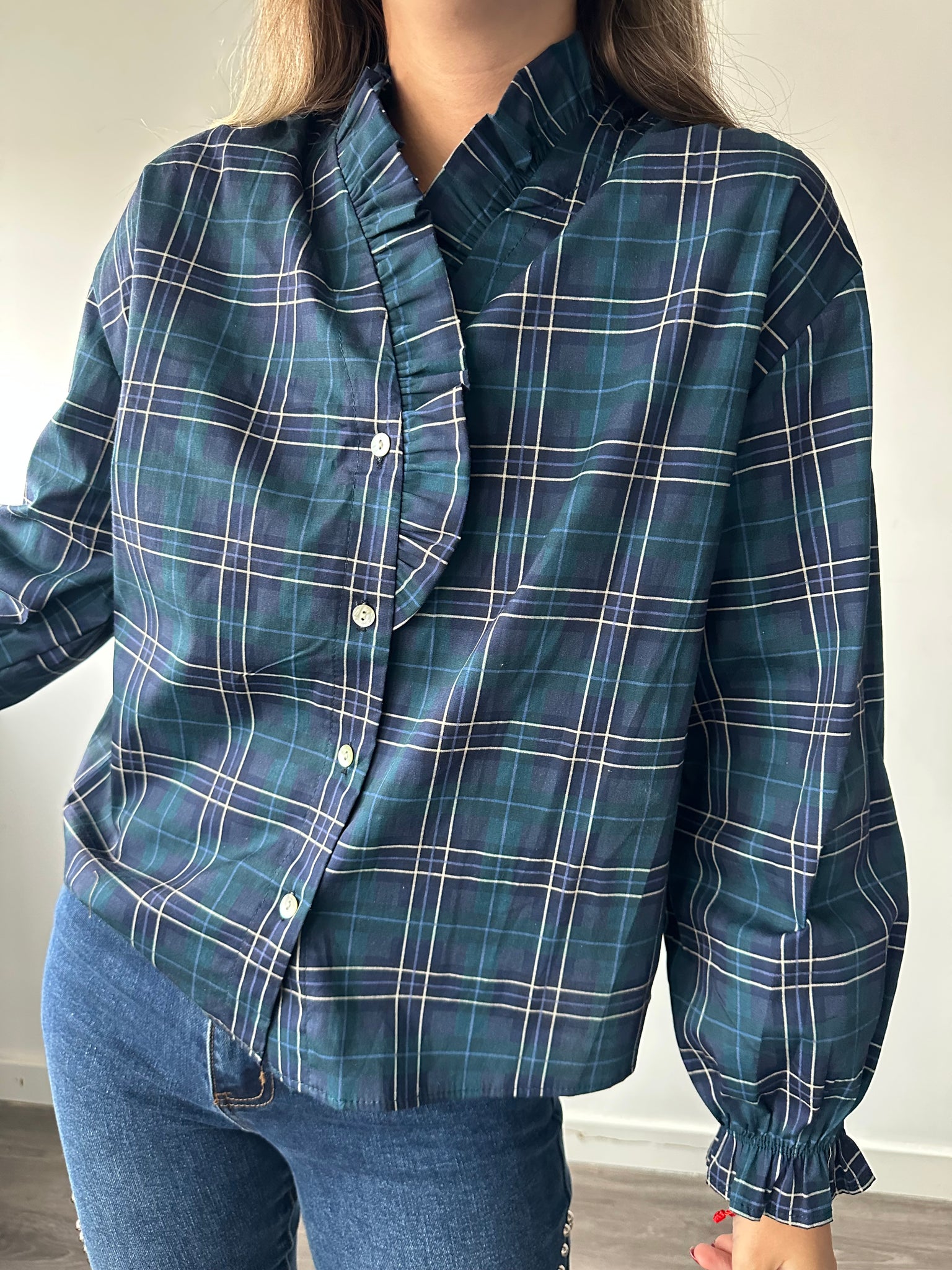 Blusa Cuadros con Volante